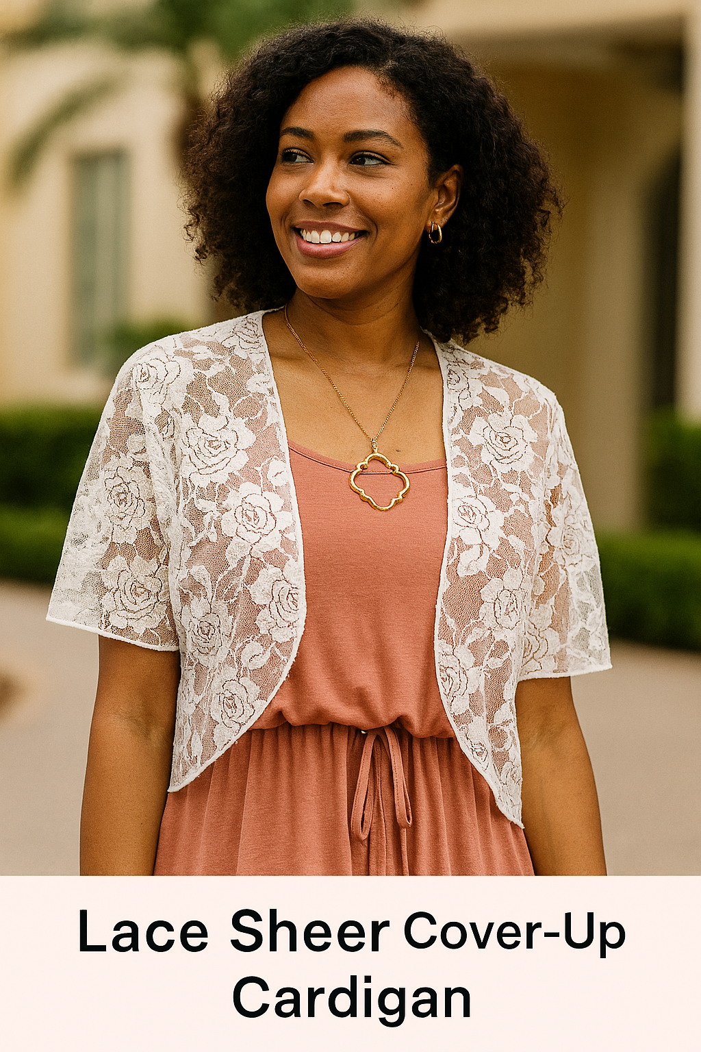 Add a touch of romantic elegance to any look with our Lace Sheer Cover-Up Cardigan. Crafted from delicate floral lace, this lightweight layer drapes beautifully over dresses, tanks, or swimwear—perfect for soft, breezy styling. Whether you're headed to brunch, the beach, or a date night, this piece brings a hint of allure while keeping things effortlessly chic.