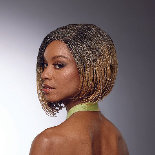 Colors: 01B, TM2/613, T1B/2720 Features: 100% Kanekalon® synthetic fiber. Yaki texture, hand-tied lace part. Hand-braided. 1½"-13". 4.6 oz. Average