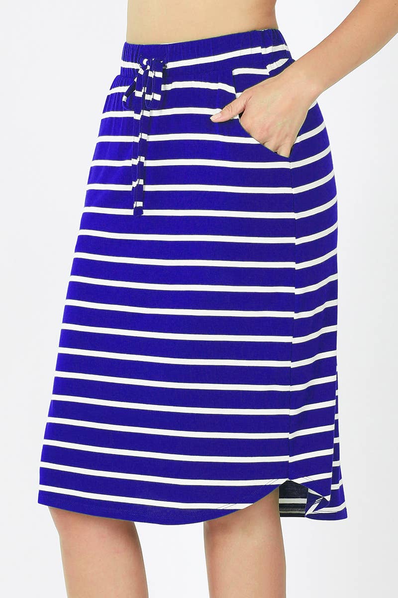 SI-16793 Stripe Self Tie Tulip Hem Skirt (95% RAYON 5% SPANDEX)