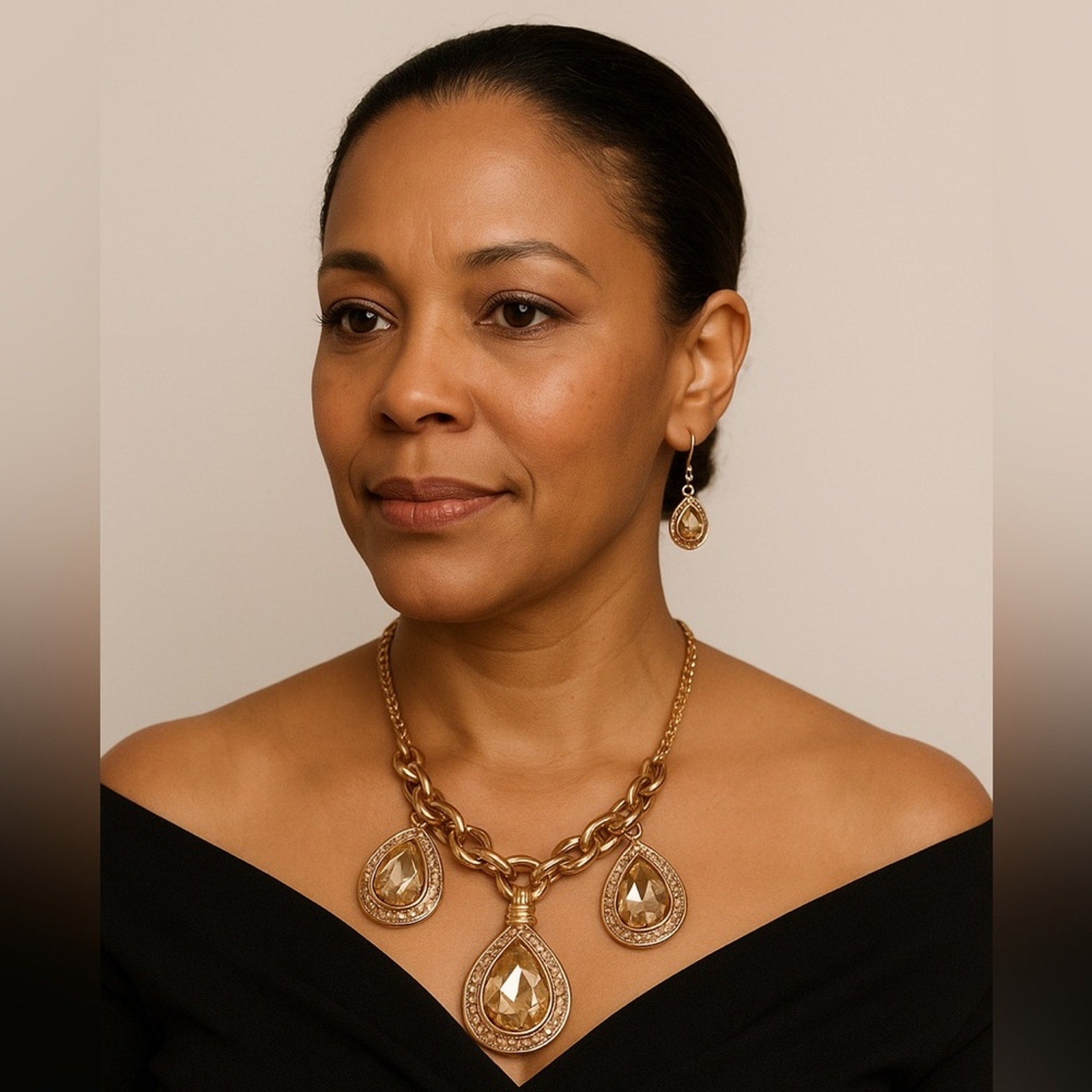 #PassionOfEssence #StatementJewelry #GoldGlam #EveningStyle #LuxuryAccessories #HolidayGlam #BoutiqueFinds #ChicStatement #WeddingGuestLook #GoldenGlow