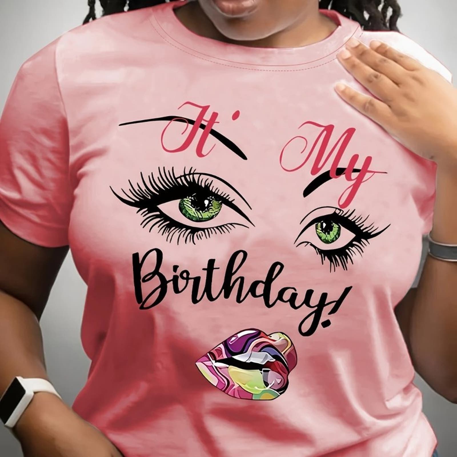 "It's My Birthday" Print T-shirt, a must-have for your special day! This short sleeve crew neck shirt is designed to celebrate your birthday in style.