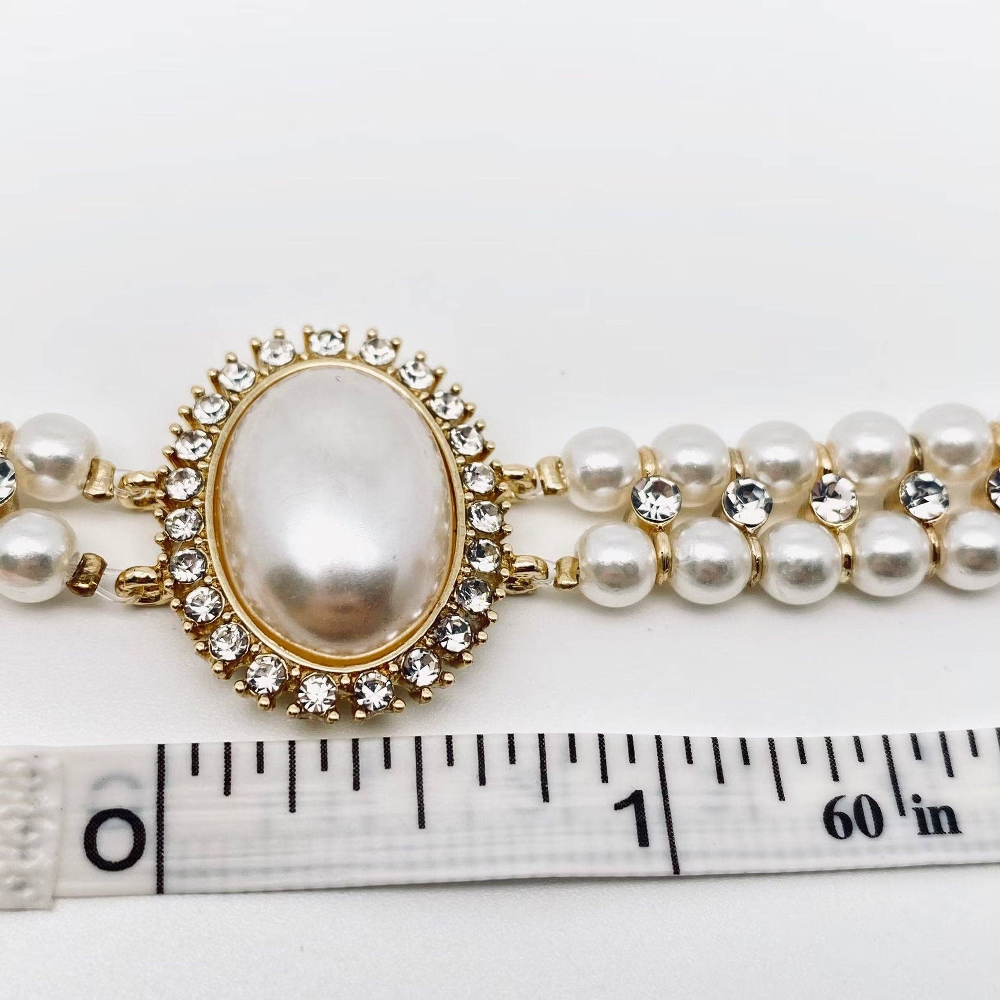 Oval Charm Double Layer Pearl Rhinestone Choker Necklace