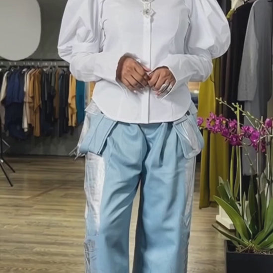 - Romantic puff long sleeves with refined silhouette