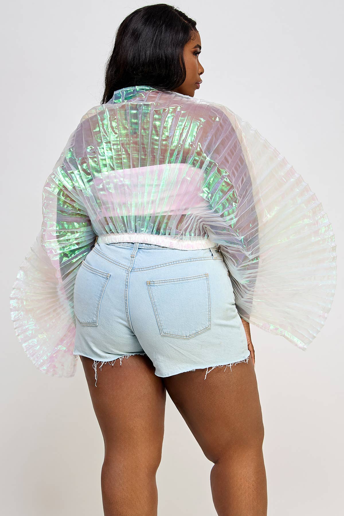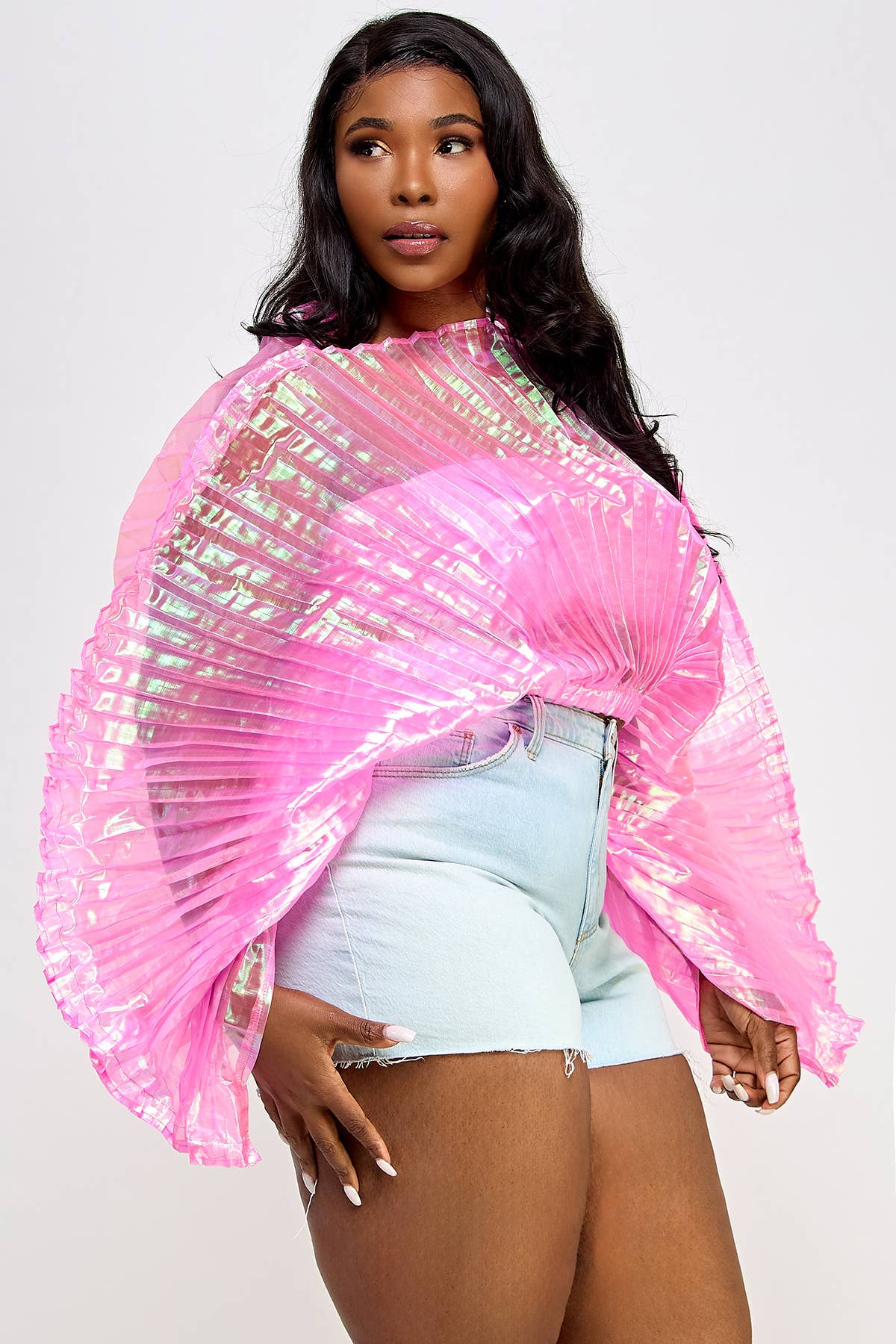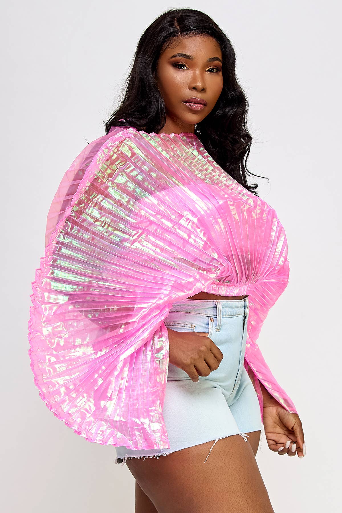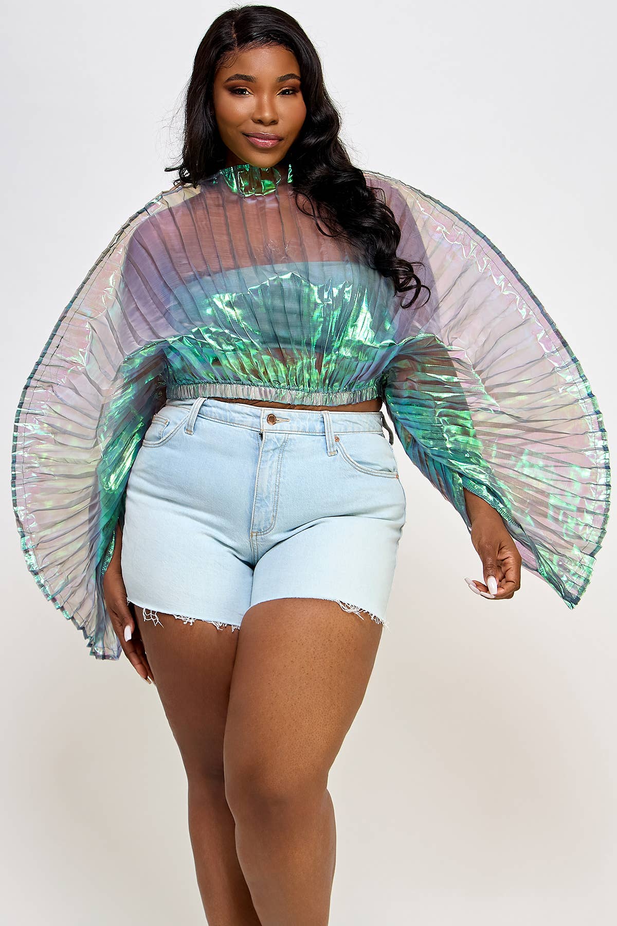 Long Sleeves Billowing Pleated Sheer Crop Top & Tube Inner Top Set, * Long Sleeve, * Billowing Pleated, * Sheer, * Crop Top, * Blouse Top, * Tube Inner Top Set, * Plus Size Pattern: Solid Length: Long Sleeve Style: Pleated Body Size: Plus