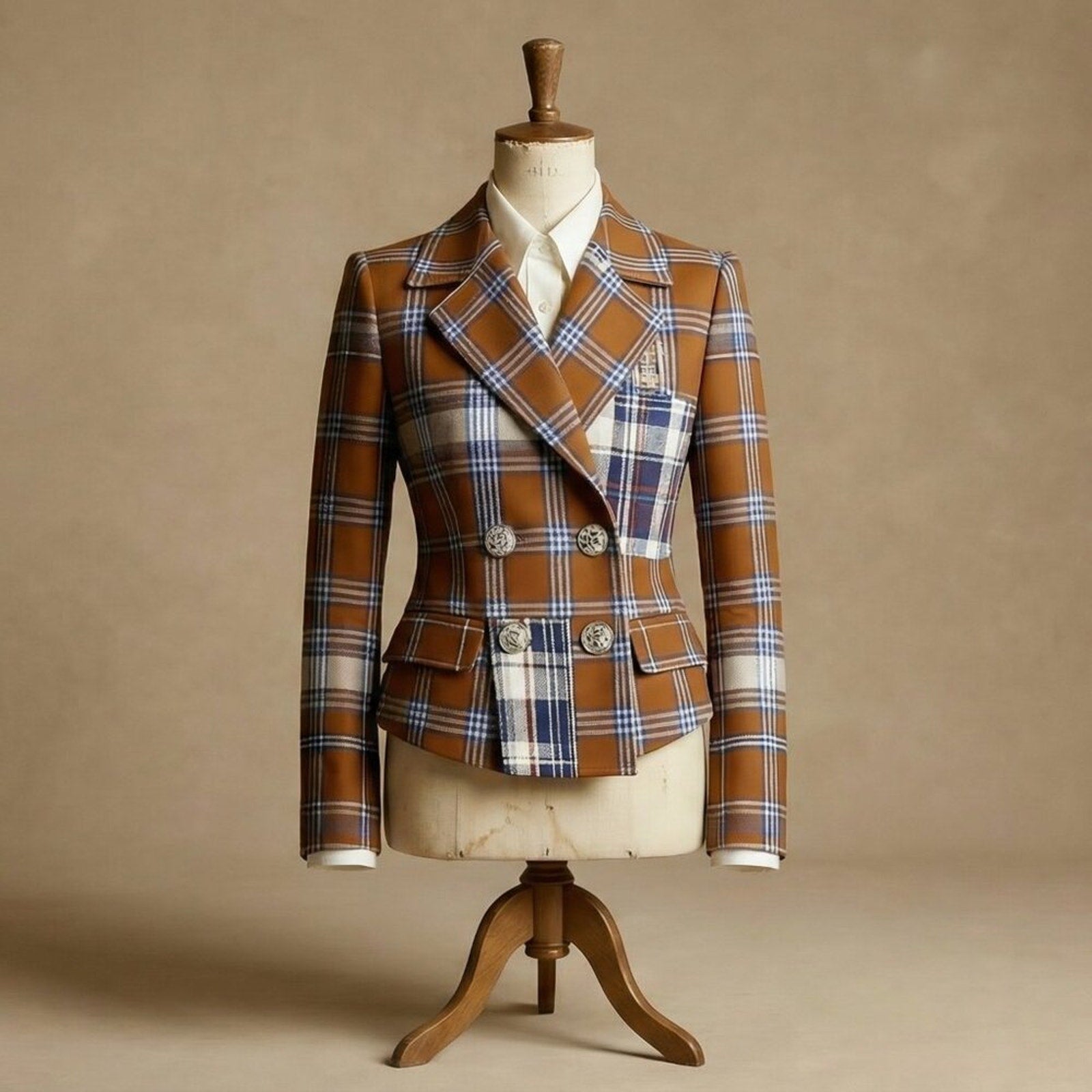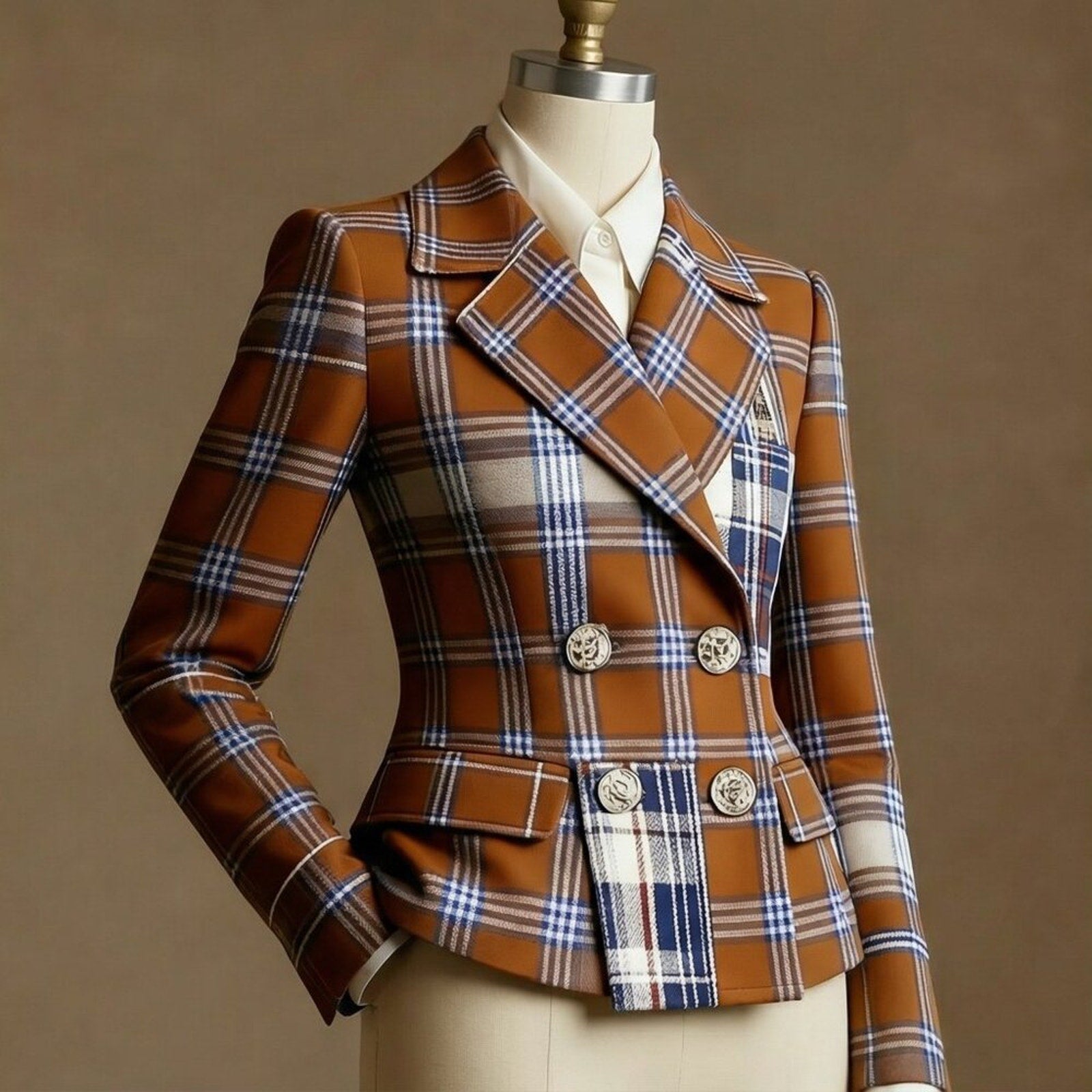 Plus Plaid Double-Breasted Blazer Coat | Lapel, Gold Buttons