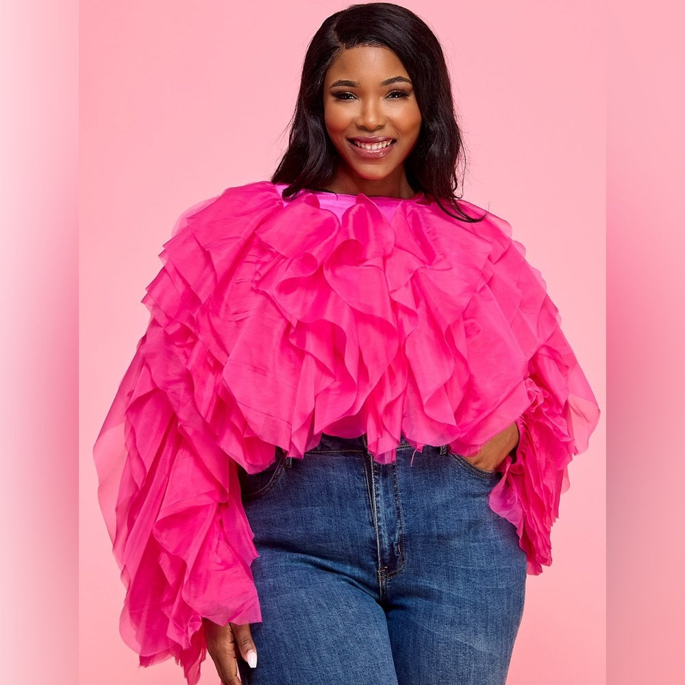 Plus Size Pink Ruffle Tulle Crop Top Blouse