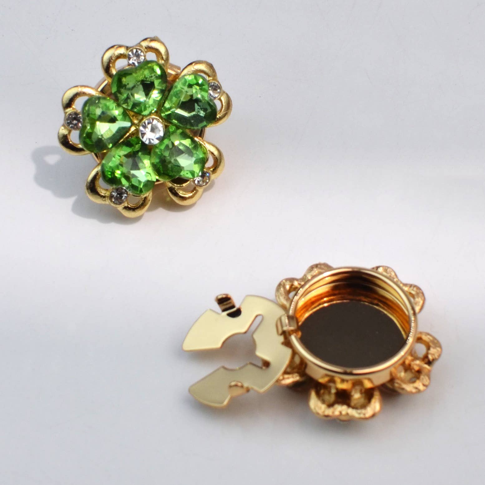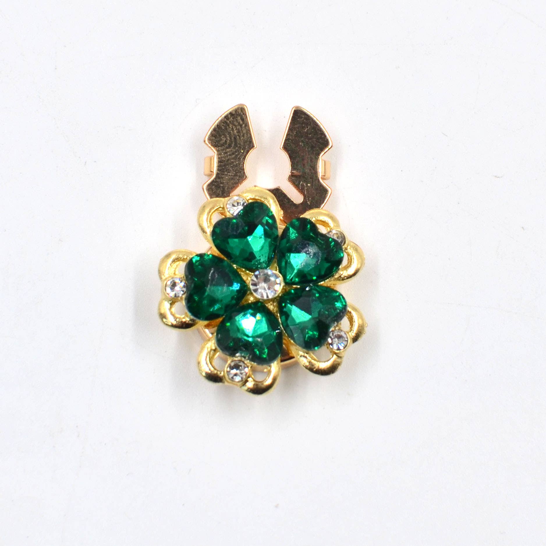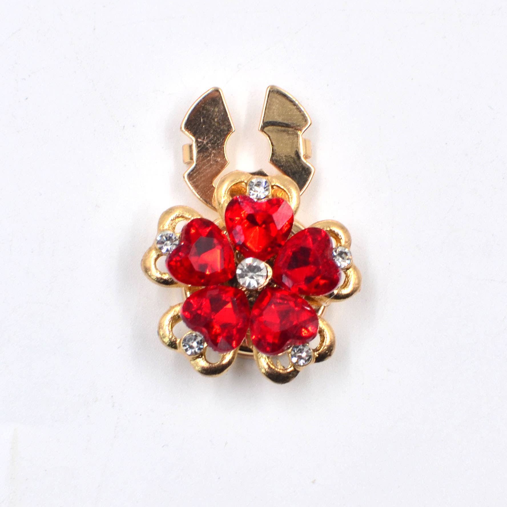 Center Accent: A clear, faceted crystal/ rhinestone in the middle that catches light.
